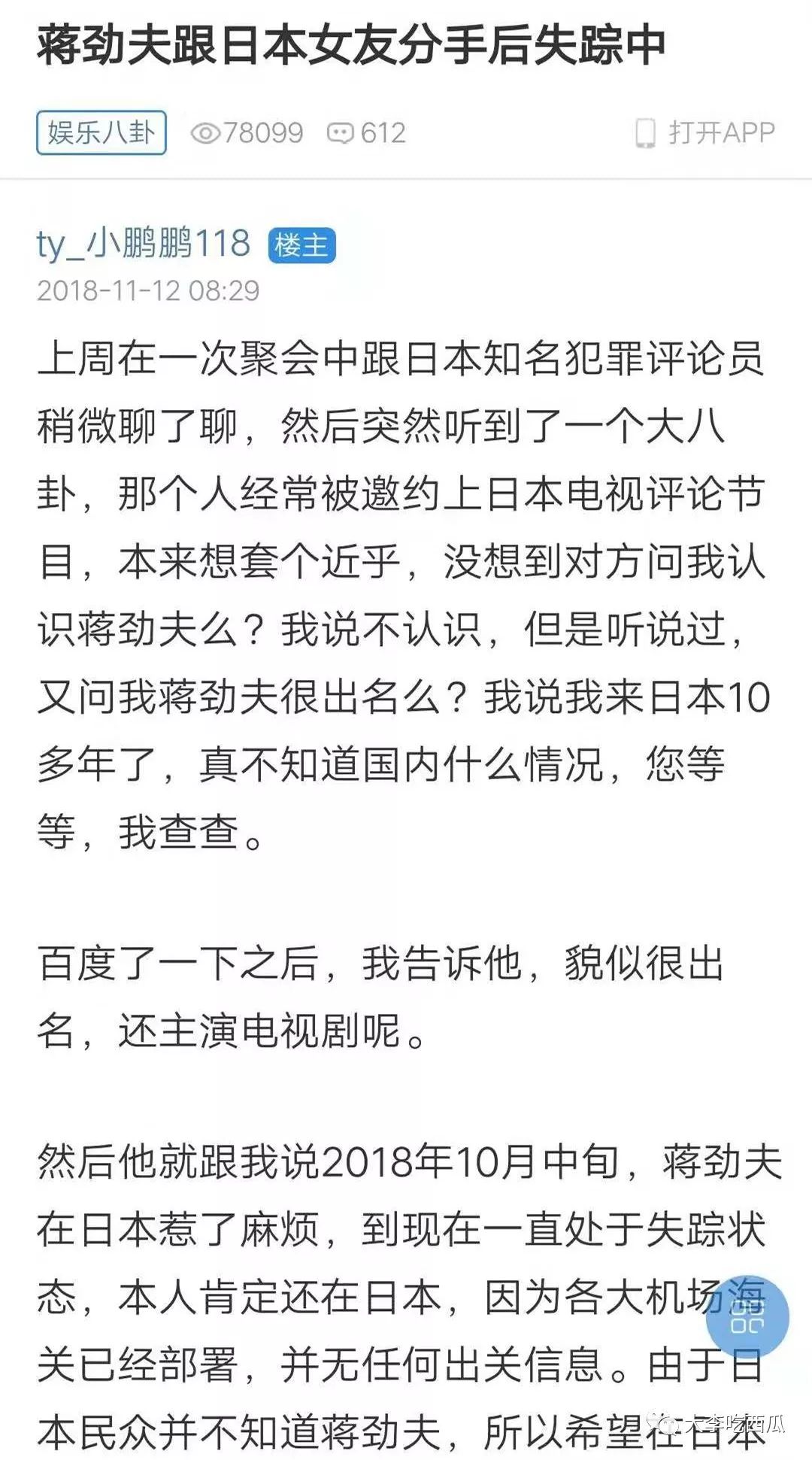 虽然蒋劲夫的工作人员辟谣,说是假的。