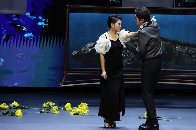 《鳄鱼》历经全国25座城市、50余场的巡演,取得了票房与口碑双丰收的好成绩。尤其是凯丽饰演的“巧玲”,以其隐忍、爆发与窒息感征服全国观众,掌声笑声欢呼声不绝于耳,连作者莫言都不吝溢美之词,称赞她:“好的演员不仅能演让人心痛的角色,也可以演让人特别炸裂奋起的角色!” 然而这一次,凯丽彻底颠覆自我。她不再是婚姻牢笼中的“巧玲”,而是化身成为那个夺走丈夫、摧毁家庭、带来无尽不幸的——“瘦马”。极致的反差一经官宣就让人充满期待,超强的实力派演技在昨晚的首演中频频燃炸现场。凯丽完美塑造出了一个复杂深刻的“情妇”形象,她看似“得宠”但却永远得不到自己最想要的名分,看似牙尖嘴利咄咄逼人但却有着痛失三个孩子的心酸,看似享受着荣华富贵的生活但内心早已认清一切,她对单无惮由爱生恨,失望透顶,最终与秘书一起离开……