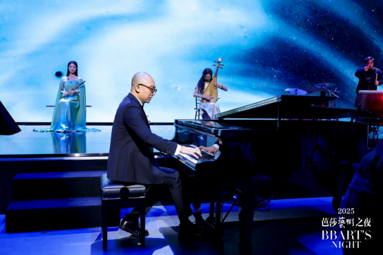 《山海晞》为晚宴开场,音符如群山初醒,声部各自生长,终汇成一片有呼吸的旋律潮汐;刘晓禹的《幻想即兴曲》在黑白键间展开理性与感性的对话,即兴中见精微;李晶晶的《笑之歌》以花腔织就一道闪光的音阶轨迹;哈拉木吉《云》的琴弦携草原之风而来,带来土地深处的古老叙事;方书剑的《Melodramma》作为终章,将整晚的星光与温度凝于旋律之中。